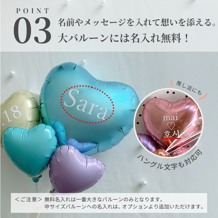 ご注文を頂いた商品によっては、それぞれのバルーンの配置が多少変更になる場合もございますが、バルーンの個数が少なくなることはございません。